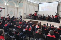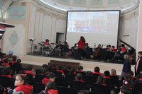 En la segunda jornada del ciclo de conciertos 2019, la Orquesta San Ignacio realizó una maratónica presentación mostrando a la comunidad ignaciana su concierto 2019. Durante una hora, los estudiantes de Pre Kínder, Kínder, 5º, 6º, 7ºy 8º Básicos, disfrutaron de esta presentación. Agradecemos a todas las familias que con su presencia apoyan la iniciativa de garantizar que sus hijos asistan a un teatro para apreciar música en vivo.