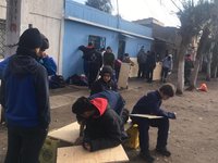La lluvia no fue una amiga esta vez y la primera decisión fue volver a las escuelas. La lluvia aumentó su intensidad y la segunda decisión : repartir las cenas prometidas y ver el partido. Porque la pasión está puesto en todo.