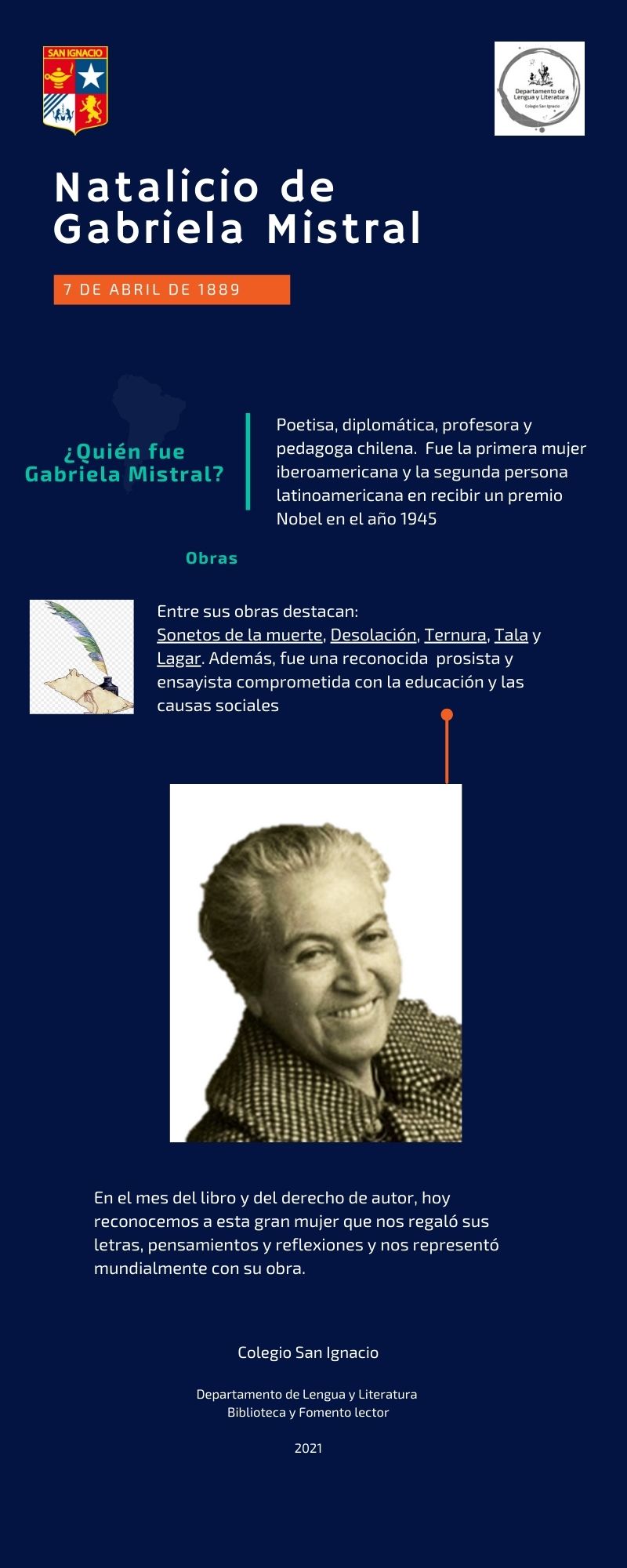 Miércoles 7 de abril - Recordamos el Natalicio de Gabriela Mistral