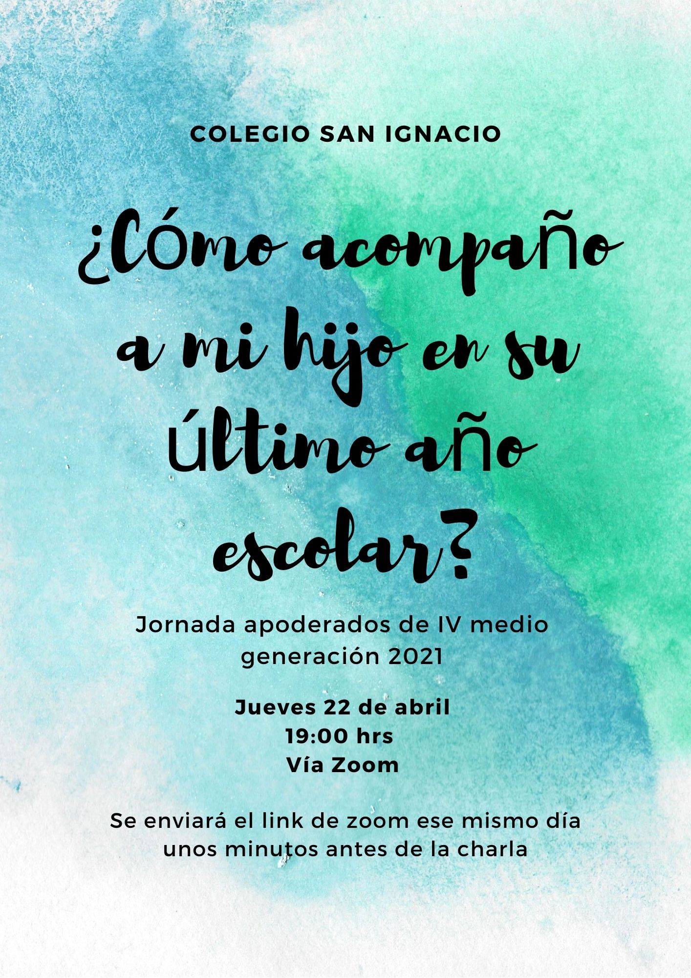 En este tiempo de pandemia, el último año escolar de sus hijos se vuelve aún más especial. Porque queremos acompañarlos de cerca, los invitamos a la jornada ¿Cómo acompaño a mi hijo en su último año escolar?, que se realizará el próximo jueves 22 de abril, a las 19:00 horas, vía Zoom.
