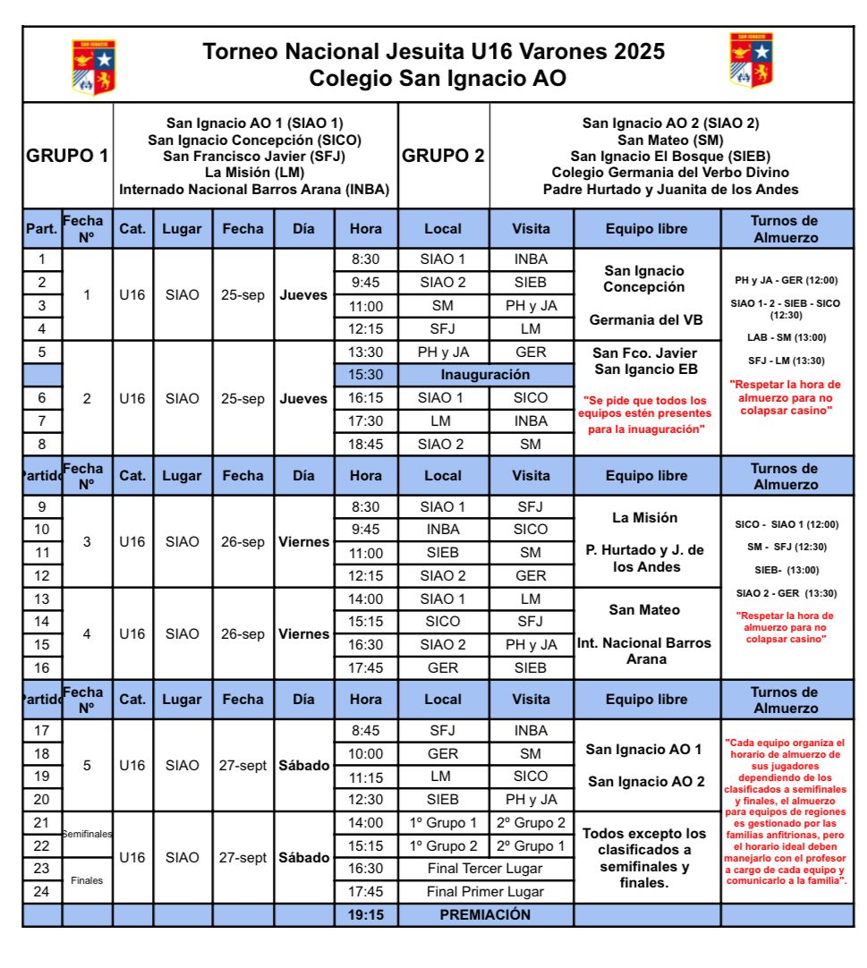 Este jueves 25 de septiembre, el Colegio San Ignacio Alonso de Ovalle será sede del Nacional Jesuita de Básquetbol Sub 16 varones, un encuentro que reúne a jóvenes de distintos rincones del país en torno al deporte, la amistad y el espíritu ignaciano.