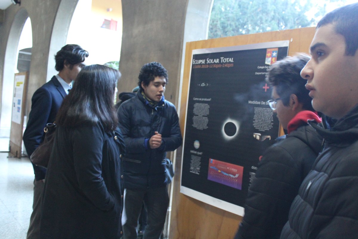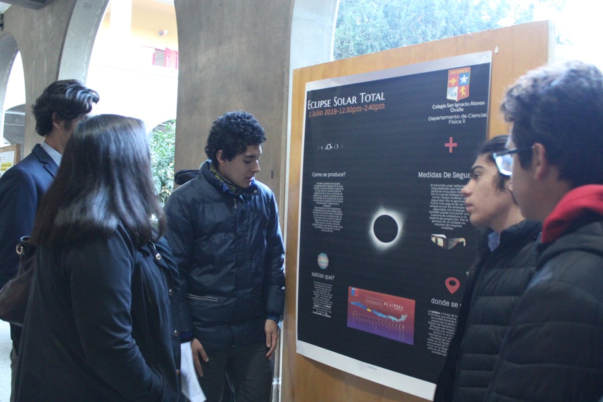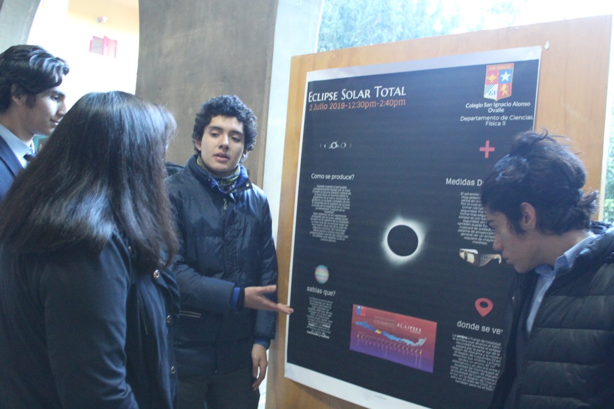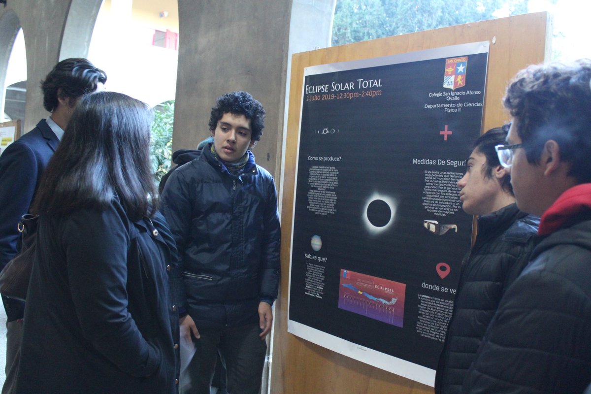 Esta mañana, en que en pocas horas más viviremos un eclipse solar, nuestros estudiantes de IIIº y IVº Medio, de Física I y II, nos recibieron con una interesante intervención científica donde, a través de la exposición del trabajo e investigación de connotados científicos, nos explicaron la evolución que ha tenido la astronomía y los conocimientos que el hombre ha adquirido del sistema solar a lo largo de la historia. Con infografías, imágenes, caracterizaciones y con un relato simple y cercano, para nuestros estudiantes más pequeños, los jóvenes entregaron una reseña del aporte que ha hecho a la ciencia Kepler, Copérnico, Einstein, Galileo y Hawking, entre otros, y nos acercaron más al fenómeno astronómico que viviremos esta tarde.